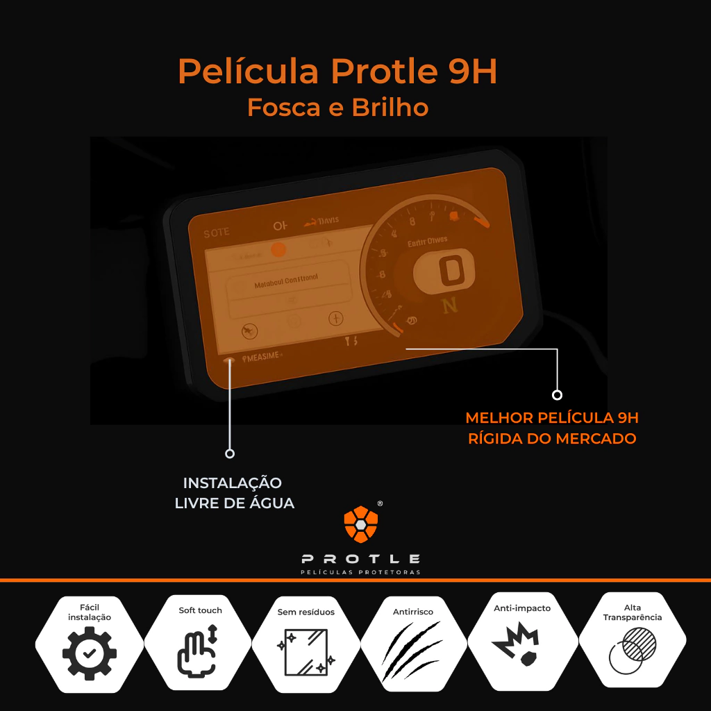 Mantenha o painel da sua moto sempre protegido e com aparência de novo com nossa Película Protetora 9H.